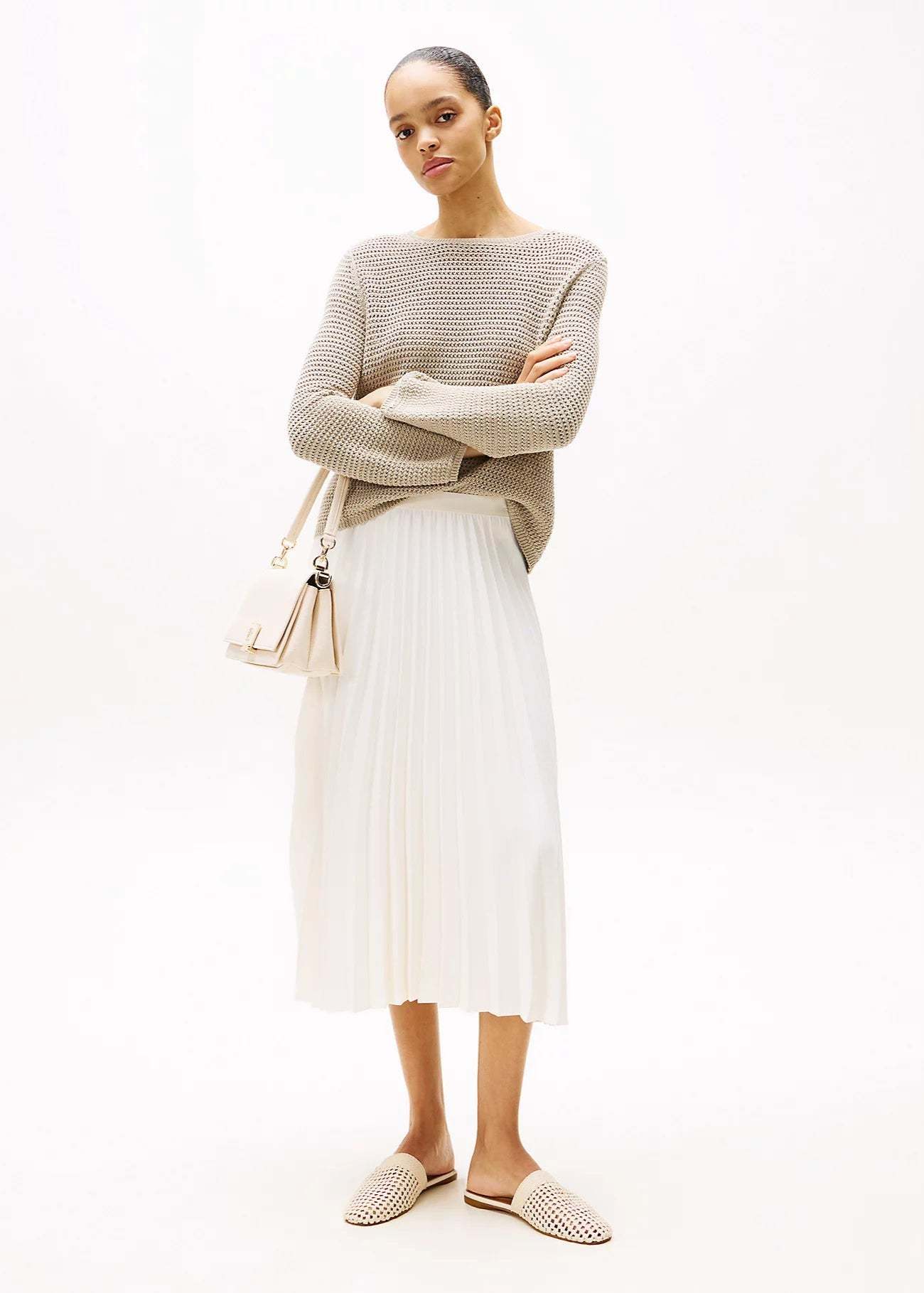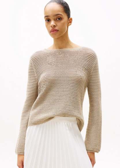 Pull femme Tomthtmy Hilfithtger beige en crochet