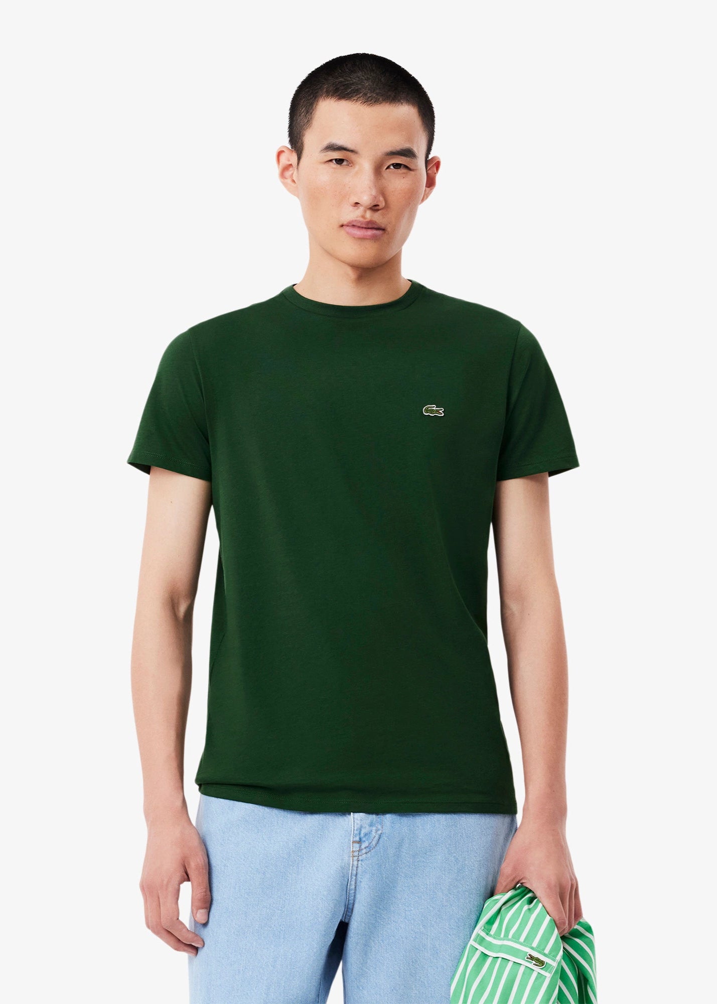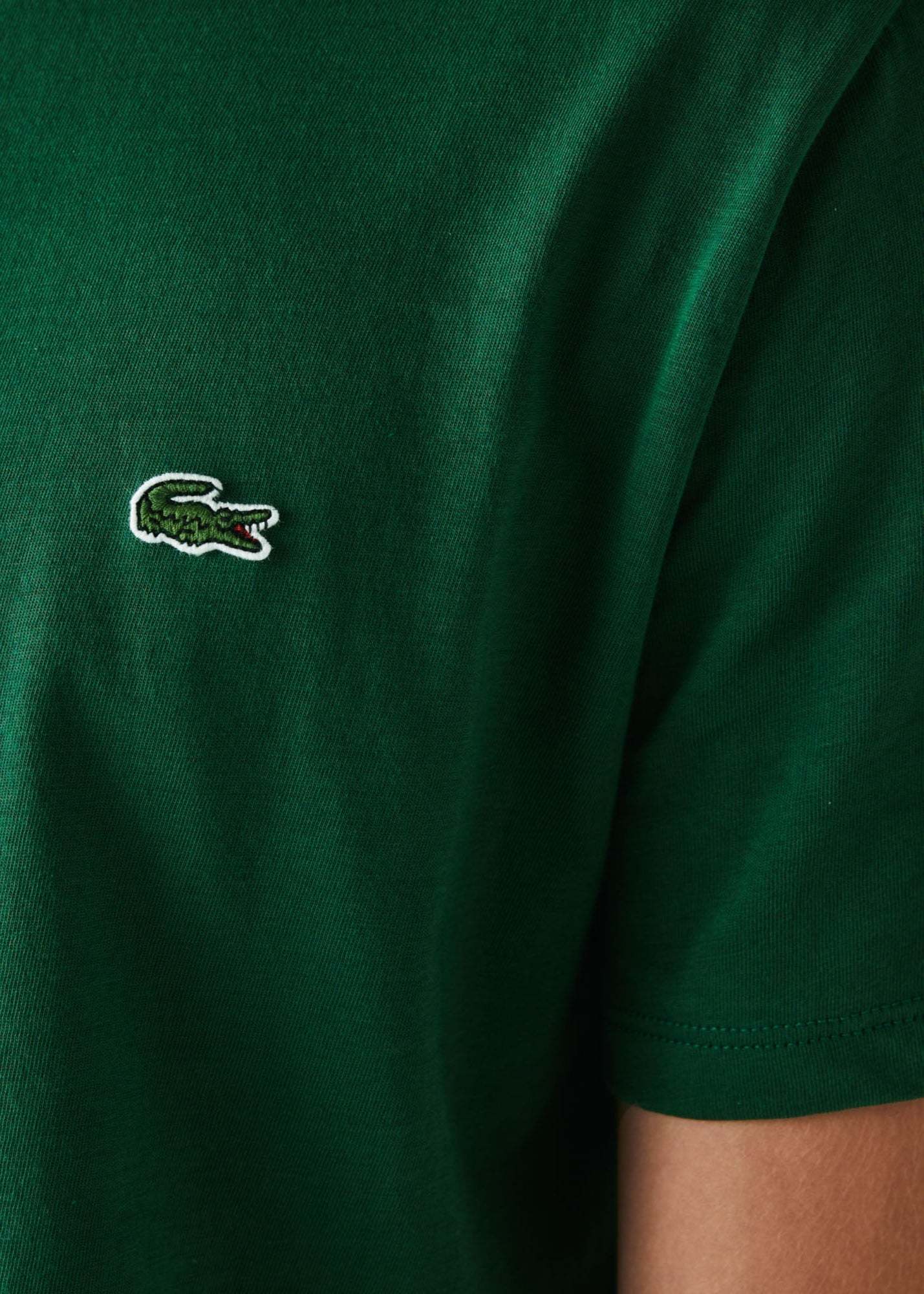 - Logo crocodile Lacthtoste vert brodé poitrine.